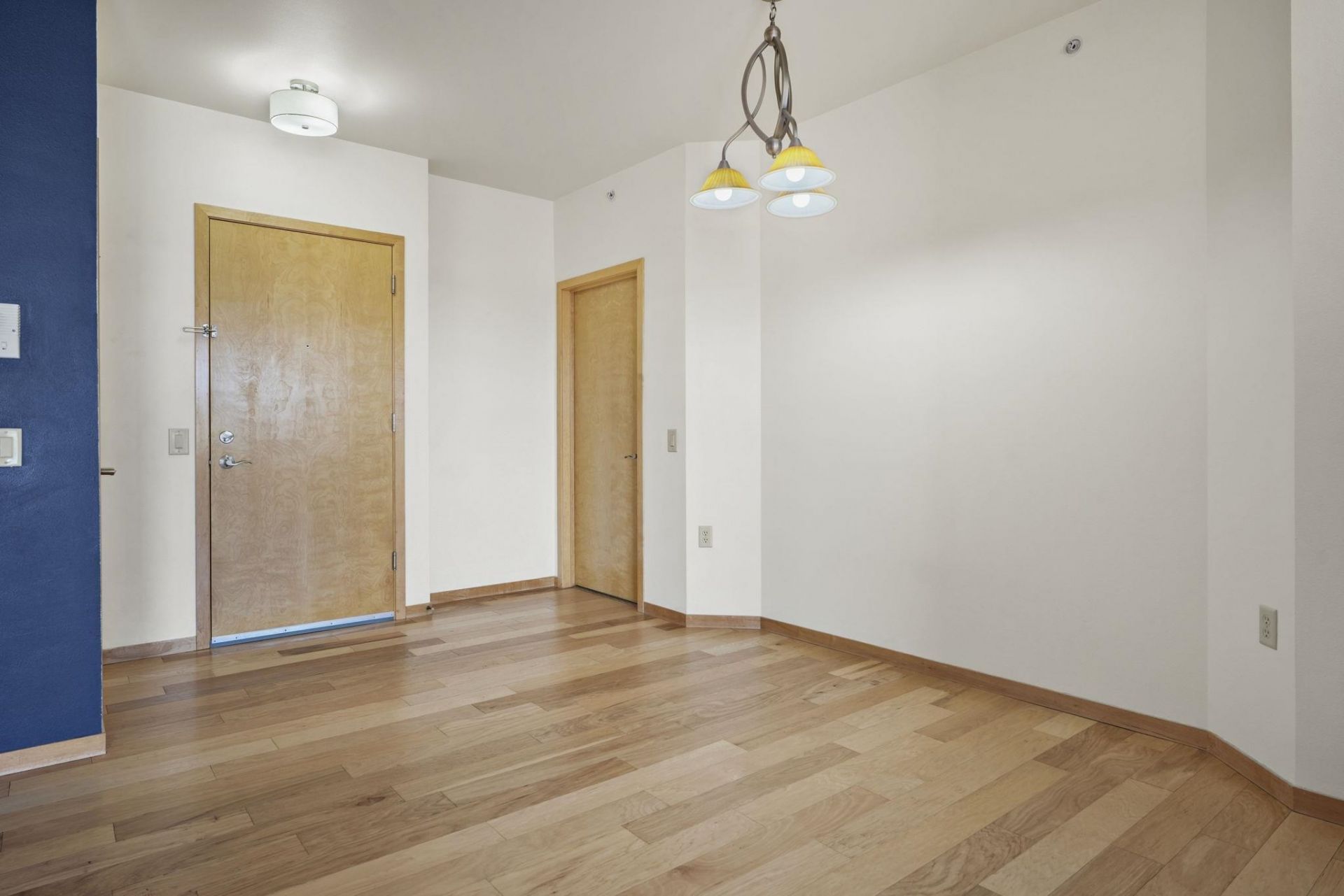Fulton Square Top Floor 2 bedroom, 2 bath condo boasts a spacious, private, sun filled condo in a walkable location in downtown Edgerton! Great open floor plan; kitchen boasts maple cabinetry, breakfast bar, pantry and is perfect for entertaining. Newer hickory floors throughout, private laundry w/built-in custom closets, both bedrooms offer built-in custom closet systems, with the primary suite featuring a walk-in closet & bath with walk in shower. Two underground parking stalls, elevator & secure building, new roof 2026, new furnace/central air 2022. Make you move, properties like this are selling quickly.