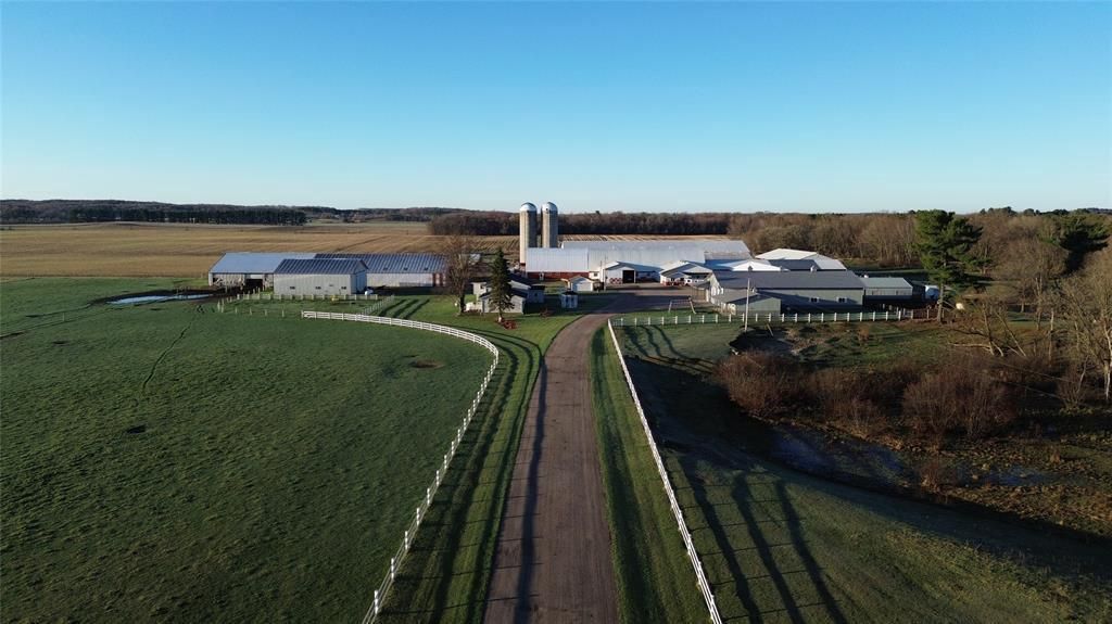 Welcome to the incredible estate of Sandy Acres! This pristine farm is located just minutes north of Eau Claire in the town of Elk Mound. Spanning approximately 136 +/- acres, the property features extremely productive tillable ground, wooded acreage and beautifully maintained buildings and sheds perfect for housing livestock and equipment. The farmhouse consists of 5 bedrooms, 3 baths and boasts incredible views in all directions! Two furnaces and air conditioning units serve the home along with heated floors within the newest addition built in 2004. The main shop situated directly across from the home includes multiple impressive improvements such as a large bar area, half bath and large heated storage area perfect for storing equipment or conducting business. The main barn also includes an large office, breakroom and bathroom. The additional sheds and barns throughout the property offer expansive areas for housing livestock and farming equipment including gates and stalls. Two separate wells serve the property providing water to the barns and home. The property also includes two silos and large feed bunkers. Included in the power shed is a 150 kw John Deere diesel generator ready to power all buildings and home in the event of a power outage! As an added bonus, enjoy approximately 1300 ft of owned frontage along the coveted class I trout stream of Elk Creek! True legacy farms like this do not become available often. Whether you are looking to begin a generational hobby farm or operate a large scale farming operation, this property has something to offer everyone!