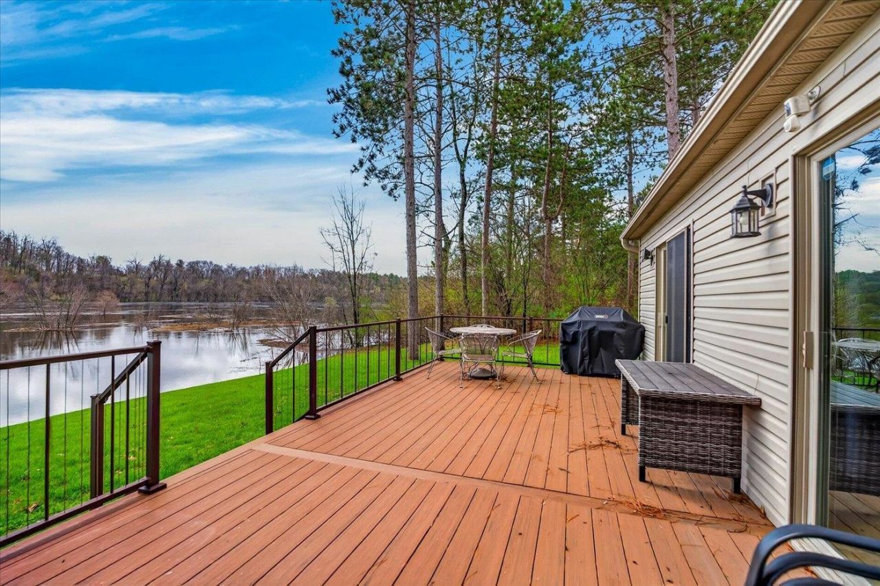 Exceptional Wisconsin River home, a private getaway less than 10 years old. This charming ranch offers the perfect blend of comfort, style, and natural beauty, nestled on a peaceful .67-acre lot right on the scenic Wisconsin River. This property has it all, a fisherman's paradise with prime walleye and smallmouth bass fishing right at your doorstep. Launch your boat from your own private access to the sandy shoreline and kayak or tube downstream for endless summer adventures. Outdoor features include two composite decks, one covered, a 10x12 gazebo ideal for hosting gatherings, and a fire pit area with covered wood storage. Inside, enjoy all new LVP flooring, furnace, fresh paint, vanities, a kitchen with a backsplash, a gas stove and a layout perfect for relaxing or entertaining. The spacious 32x30 three-car garage provides plenty of storage. Just a short drive from Wisconsin Dells and Lake Delton, this turnkey property is ideal as a year-round residence or seasonal retreat.