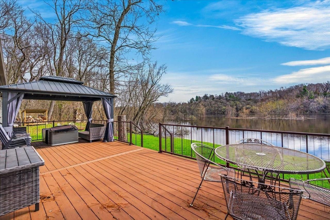 Exceptional Wisconsin River home, a private getaway less than 10 years old. This charming ranch offers the perfect blend of comfort, style, and natural beauty, nestled on a peaceful .67-acre lot right on the scenic Wisconsin River. This property has it all, a fisherman's paradise with prime walleye and smallmouth bass fishing right at your doorstep. Launch your boat from your own private access to the sandy shoreline and kayak or tube downstream for endless summer adventures. Outdoor features include two composite decks, one covered, a 10x12 gazebo ideal for hosting gatherings, and a fire pit area with covered wood storage. Inside, enjoy all new LVP flooring, furnace, fresh paint, vanities, a kitchen with a backsplash, a gas stove and a layout perfect for relaxing or entertaining. The spacious 32x30 three-car garage provides plenty of storage. Just a short drive from Wisconsin Dells and Lake Delton, this turnkey property is ideal as a year-round residence or seasonal retreat.