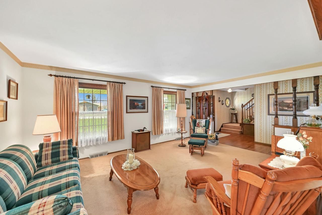 Fabulous location on over 1/2 acre with peaceful open views and plenty of space behind the lot! Enjoy outdoor entertaining on the brick patio or relax in the sun porch taking in the scenery. Meticulous interior throughout! Elegant living room offers great space for furnishings. Huge kitchen/dinette with abundant cabinetry, generous counter space and room for large gatherings. Formal dining room features two built-in china cabinets. Expansive main level family room with Franklin natural fireplace. Convenient main level laundry and powder room. Side drive to attached garage. Upper level offers 4 spacious bedrooms and full bath. Hardwood floors in kitchen and bedrooms. Lower level office plus full shower. Low taxes for affordable living!